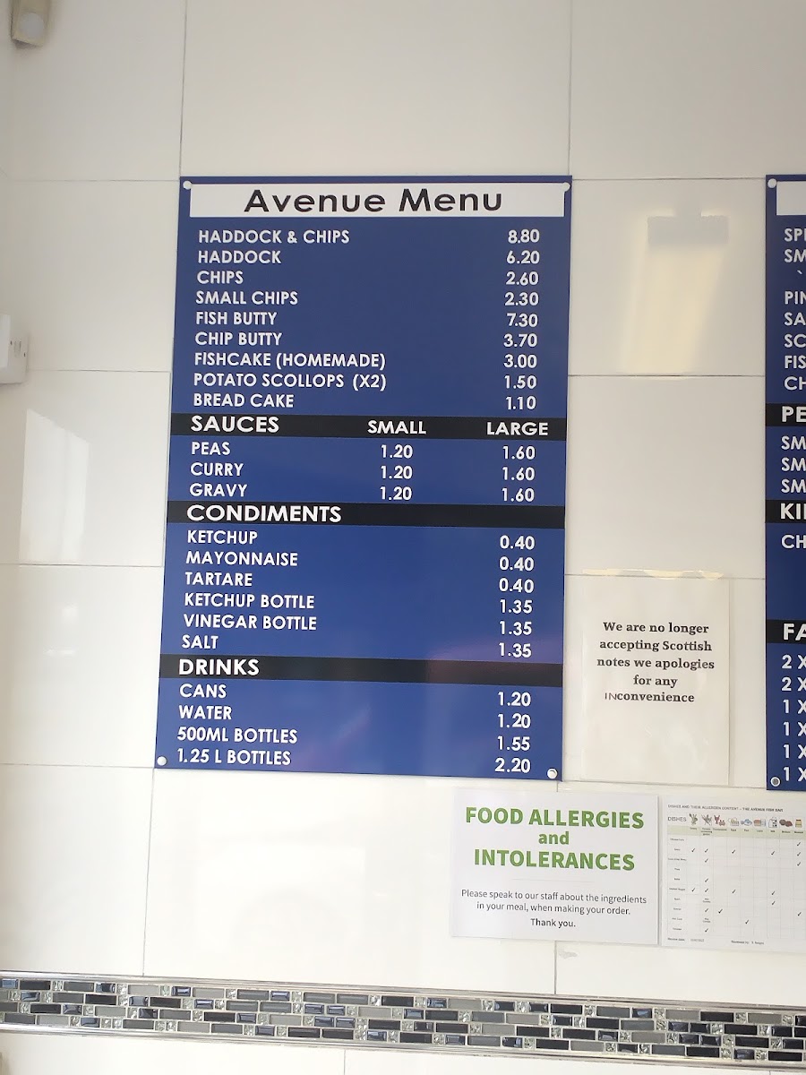 The Avenue Fish Bar Menu